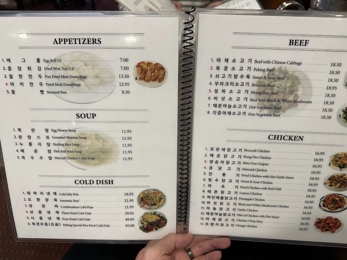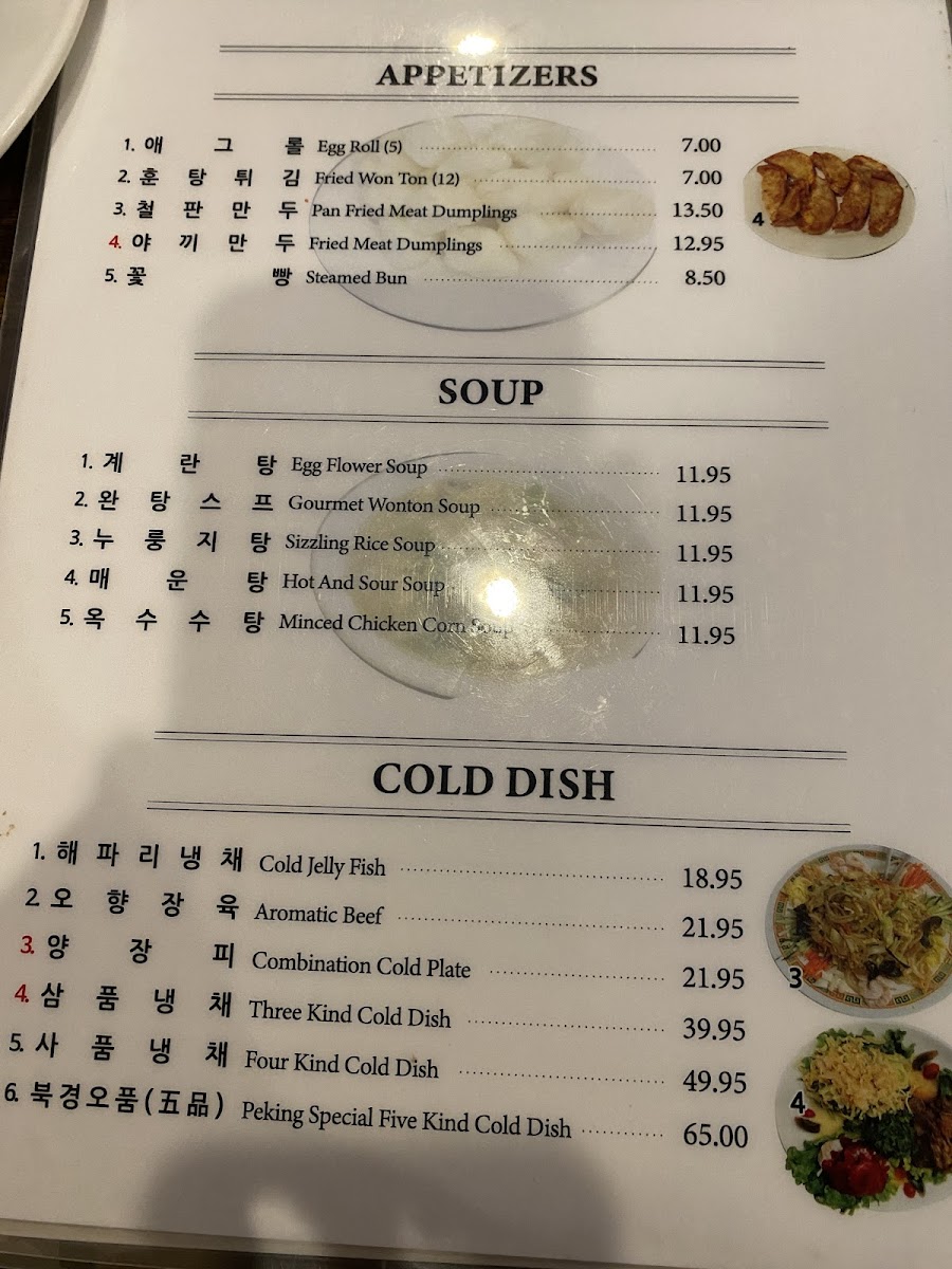The menu at Peking Gourmet offers a variety of Chinese dishes organized into several main categories to accommodate different preferences and meal occasions. Visitors can find a selection of soups, cold dishes, and rice options, each featuring traditional flavors and ingredients common in Chinese cuisine.
